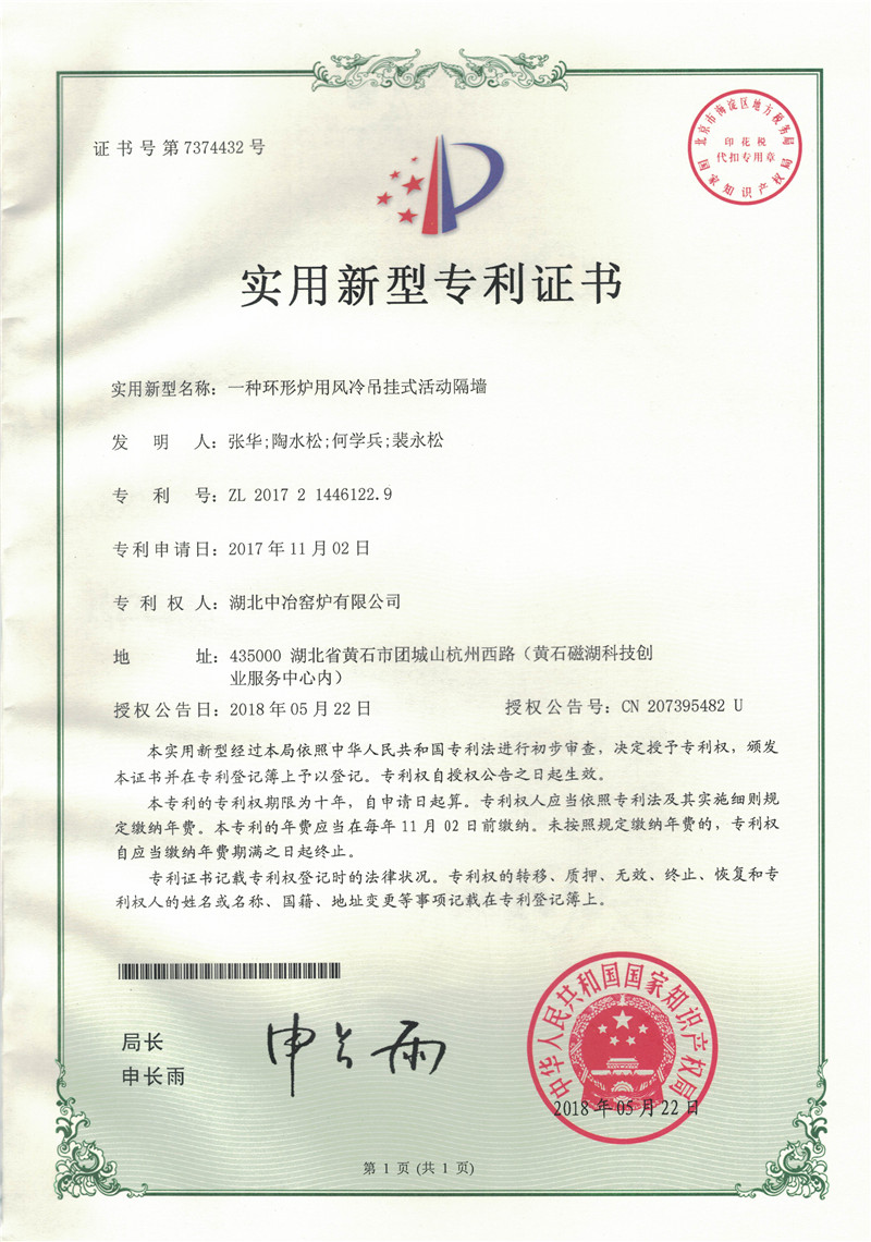 一種環(huán)形爐用風(fēng)冷吊掛式活動隔墻